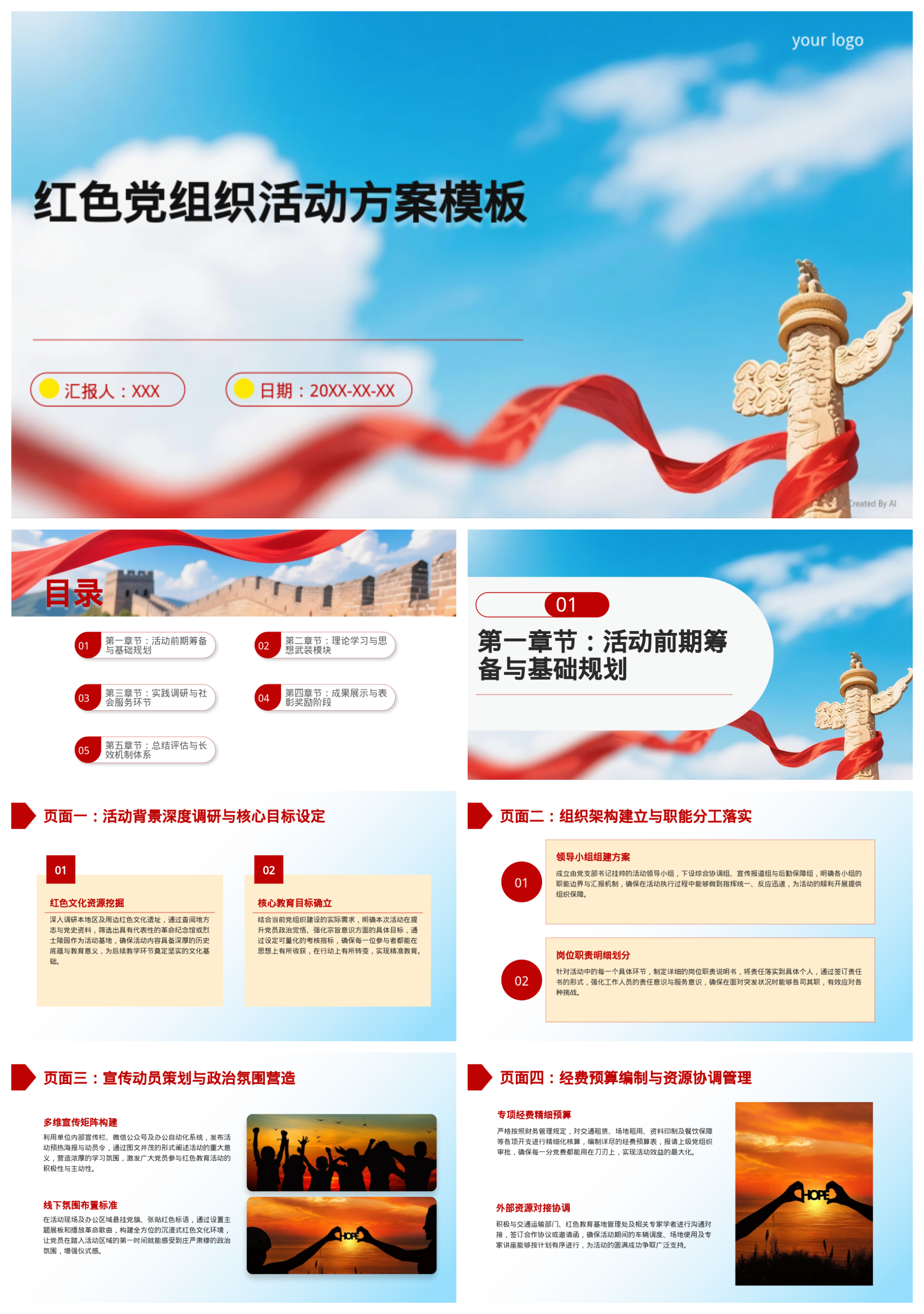 汇集工作总结、教育培训、企业宣传、活动营销等场景模板,支持快速筛选、长图预览与详情访问。