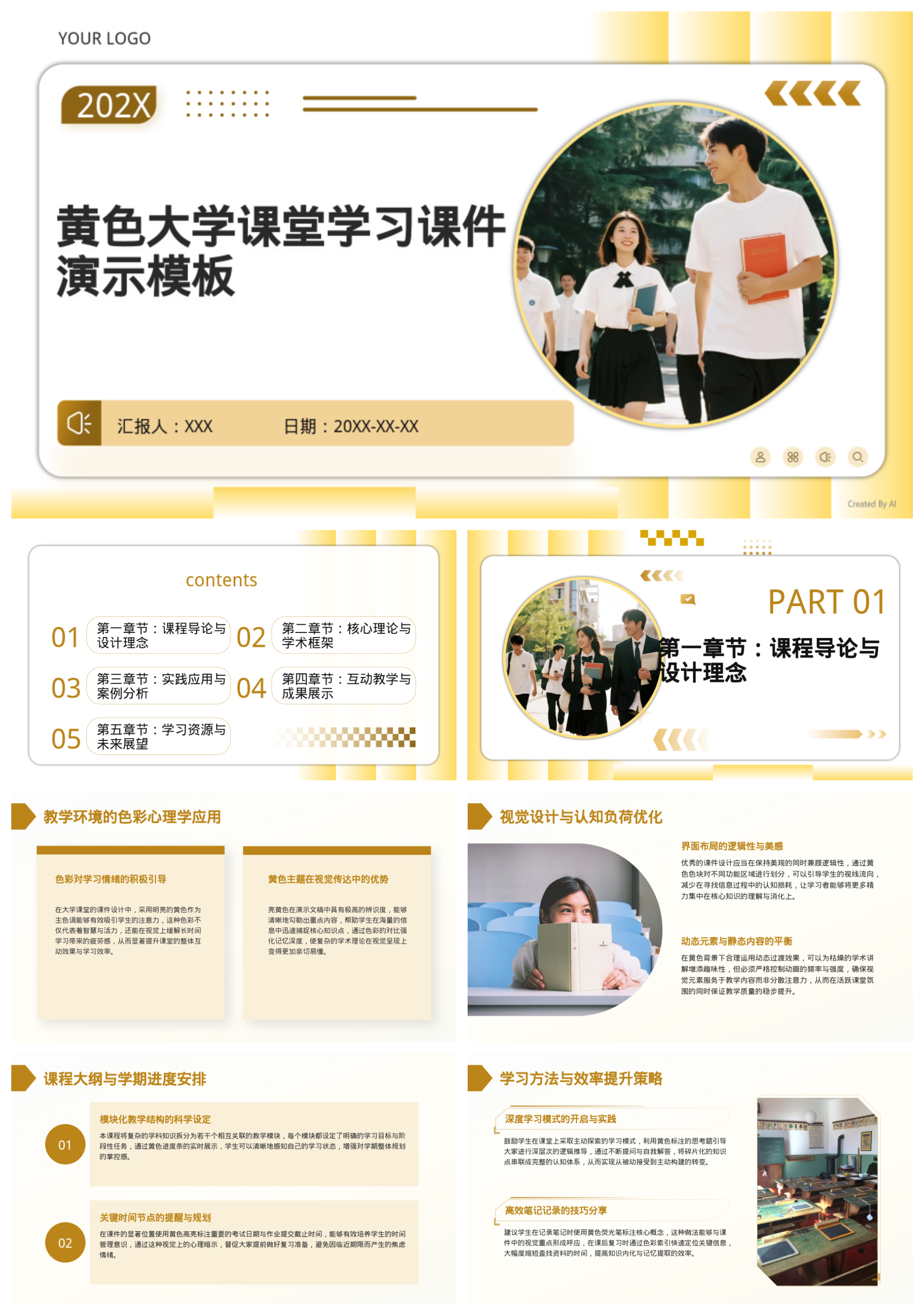 黄色大学课堂学习课件演示模板