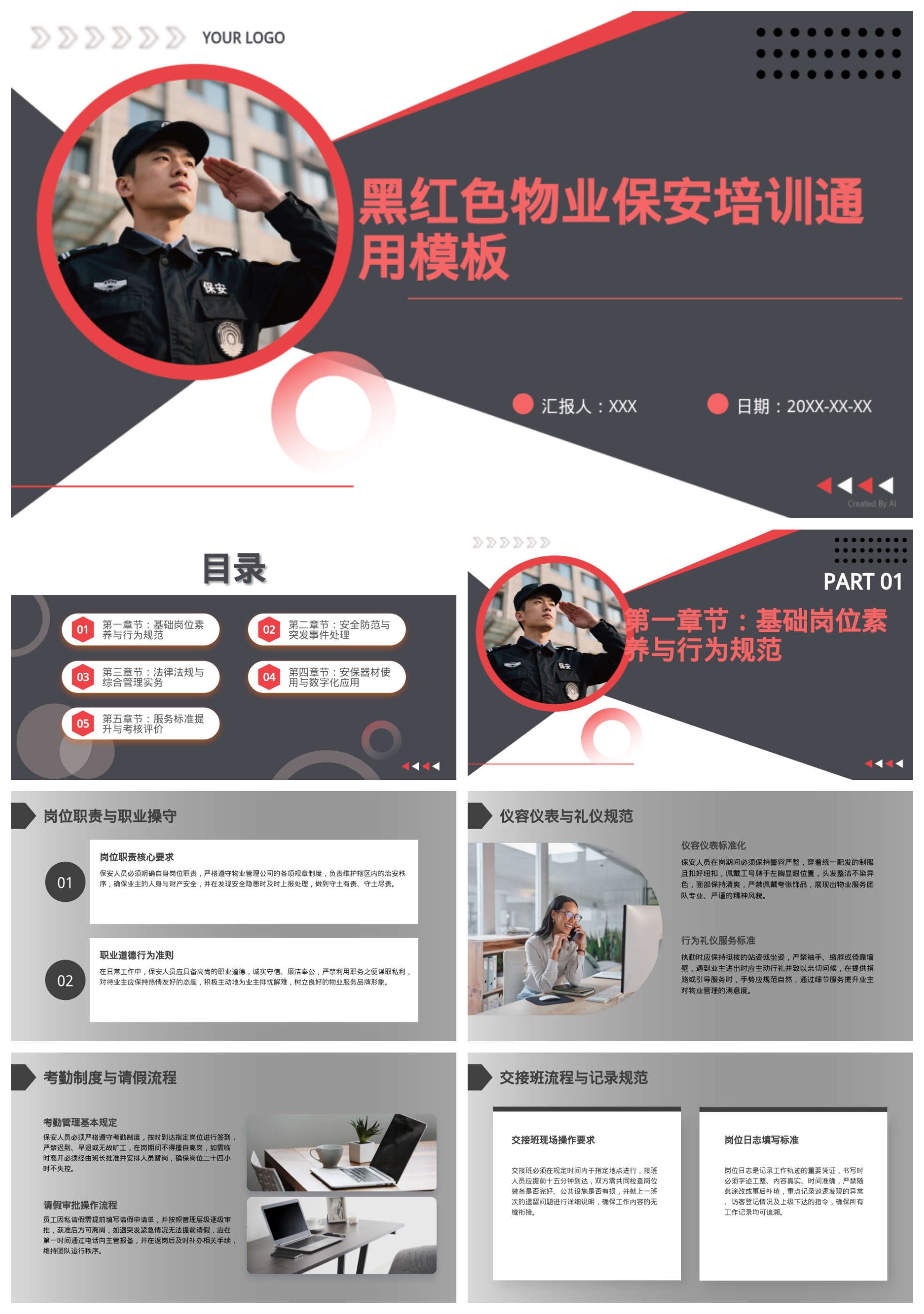 黑红色物业保安培训通用模板