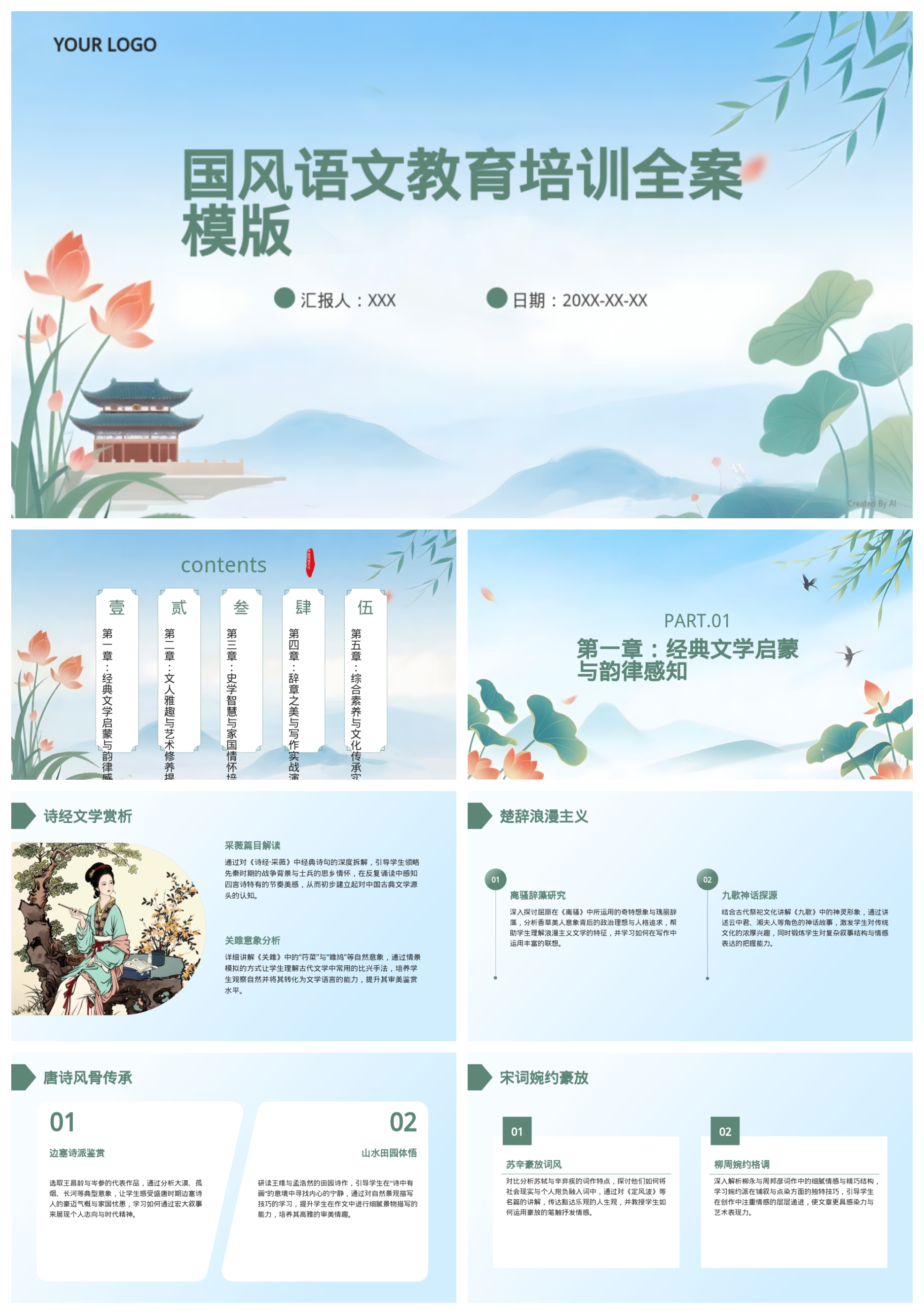 汇集工作总结、教育培训、企业宣传、活动营销等场景模板,支持快速筛选、长图预览与详情访问。