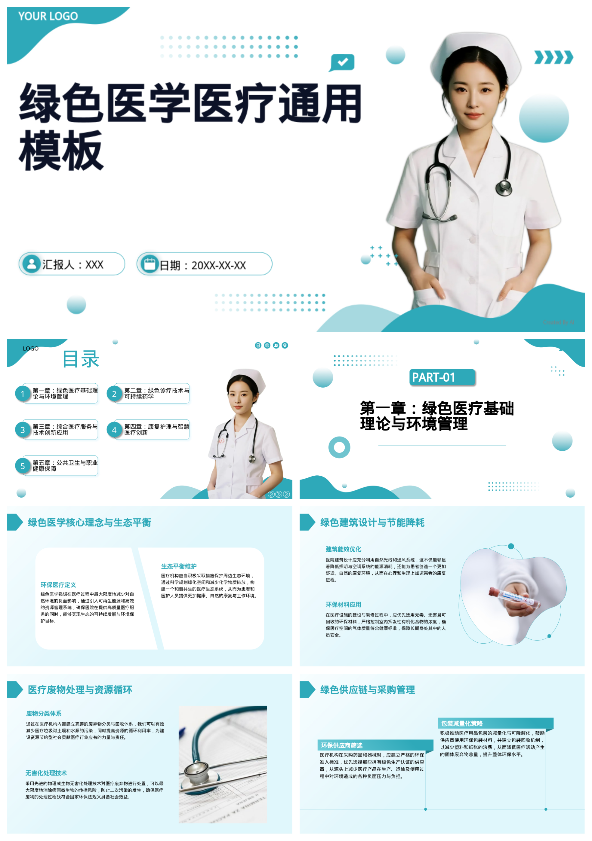 绿色医学医疗通用模板