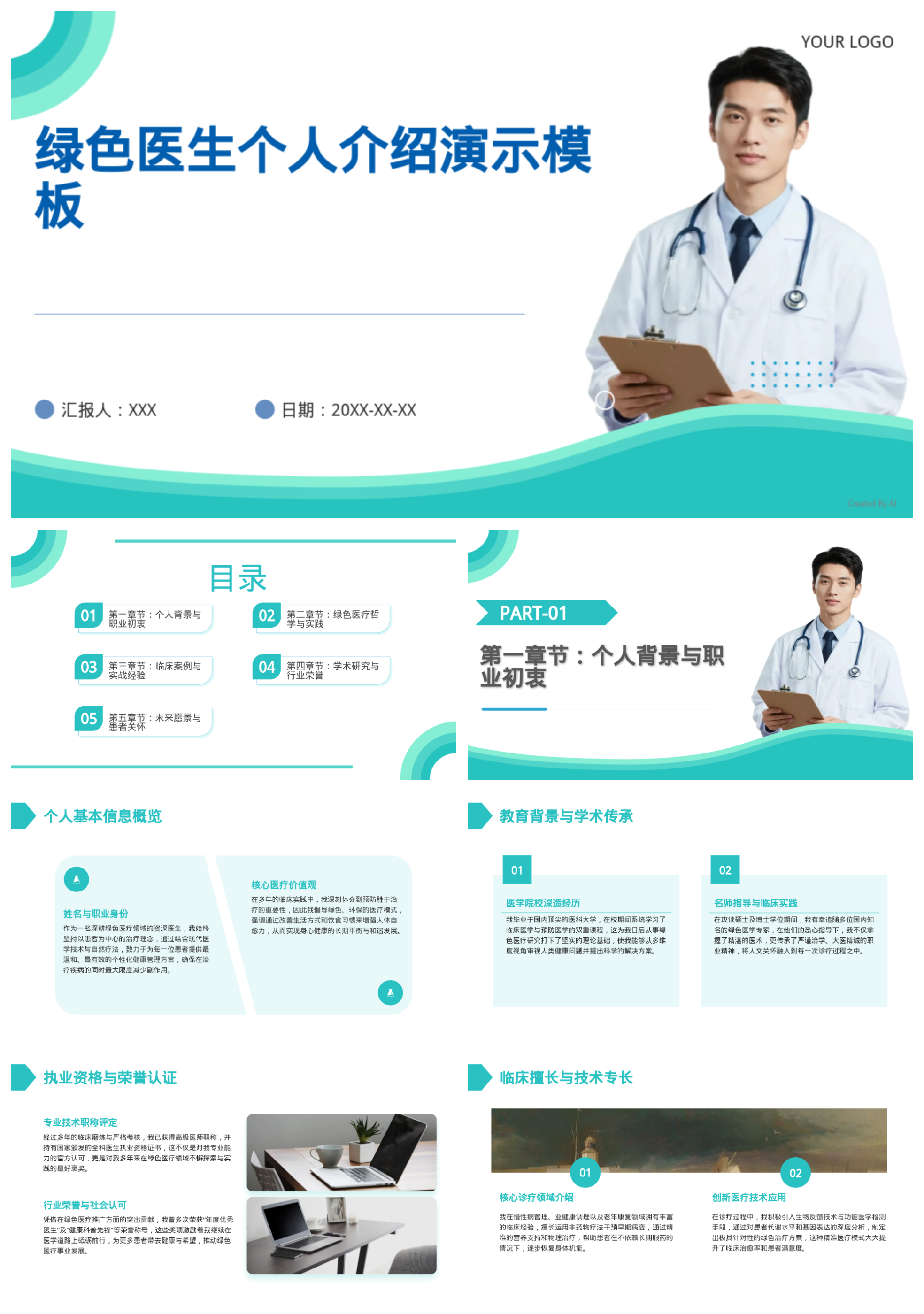 绿色医生个人介绍演示模板