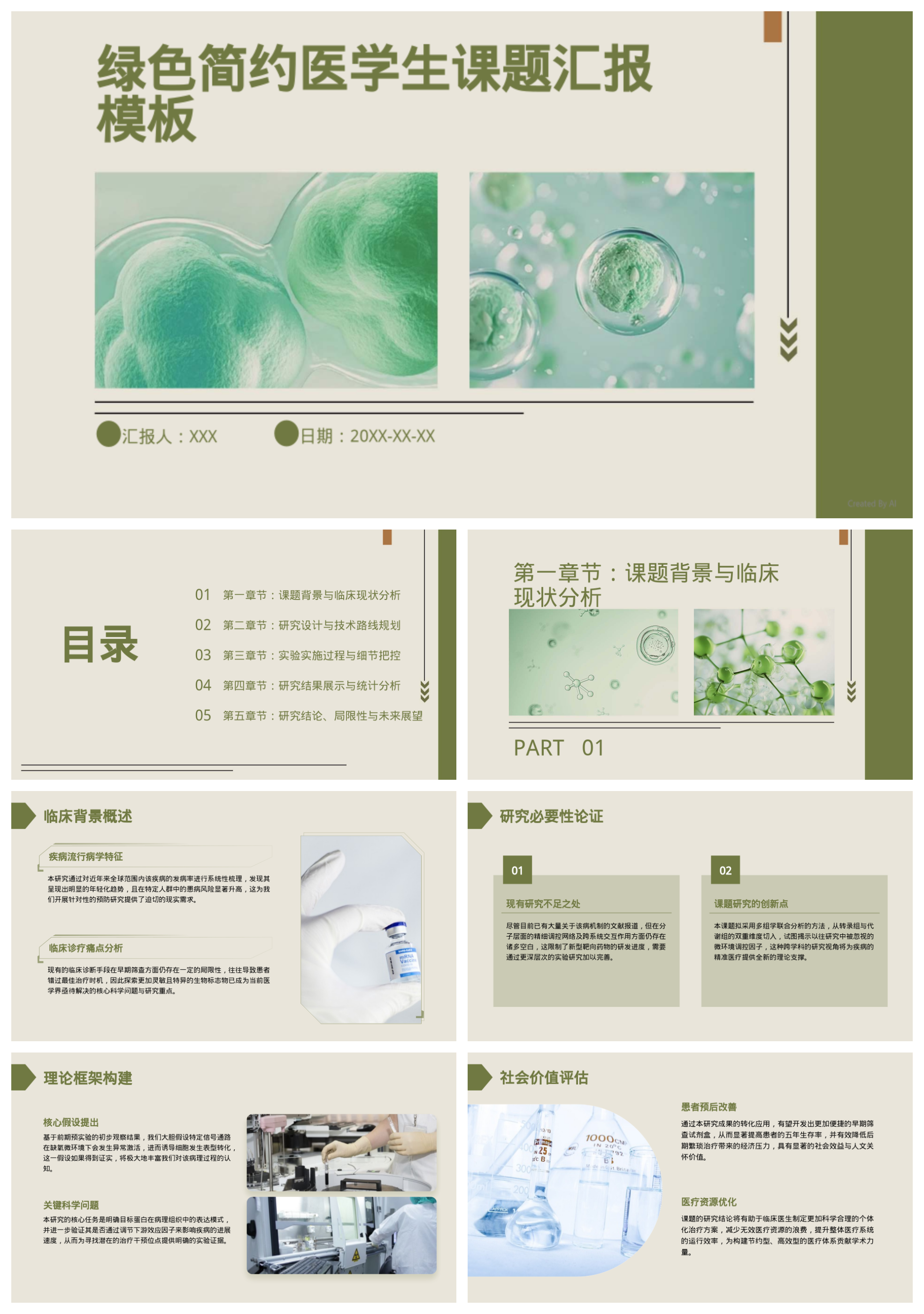 绿色简约医学生课题汇报模板