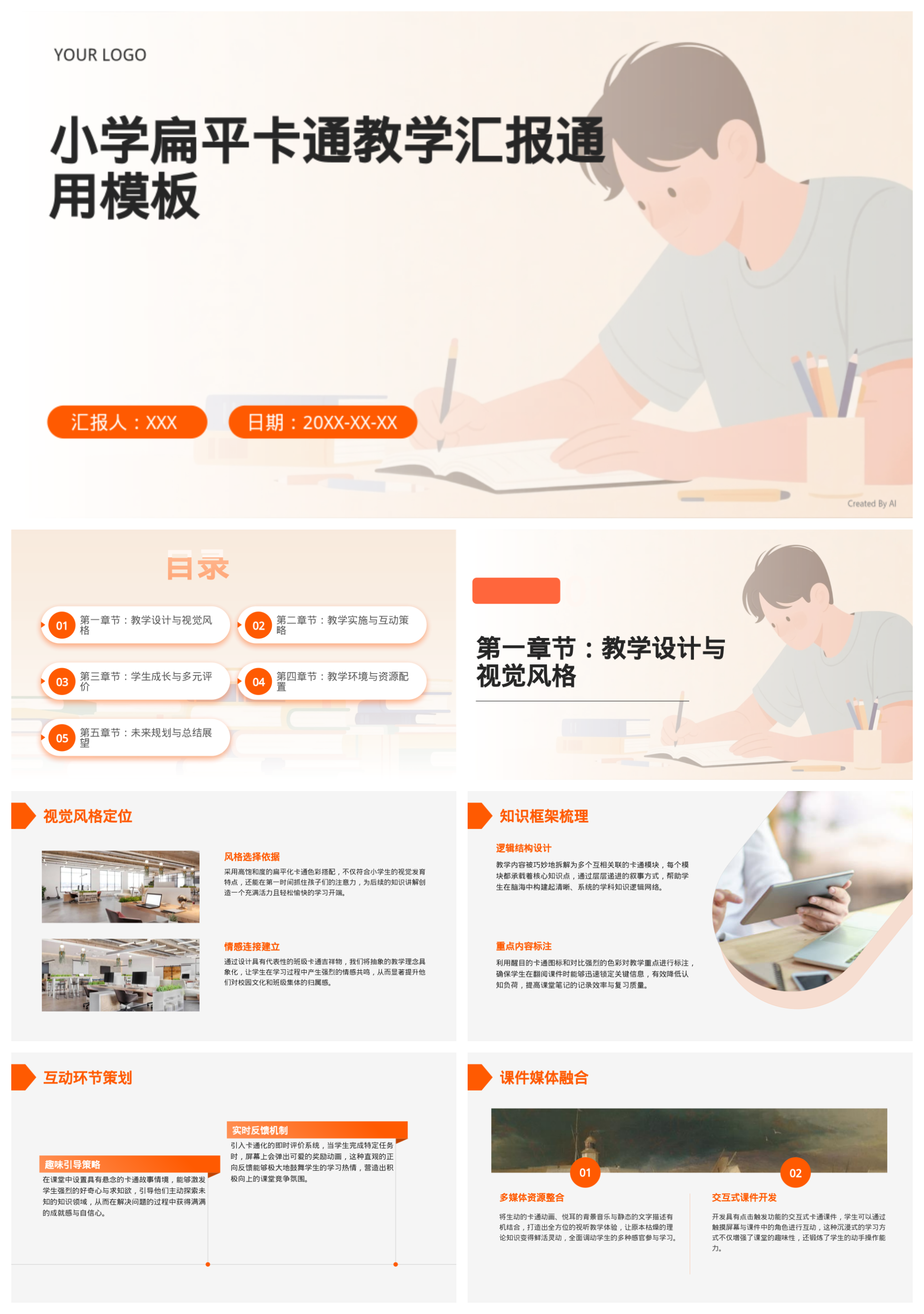 小学扁平卡通教学汇报通用模板