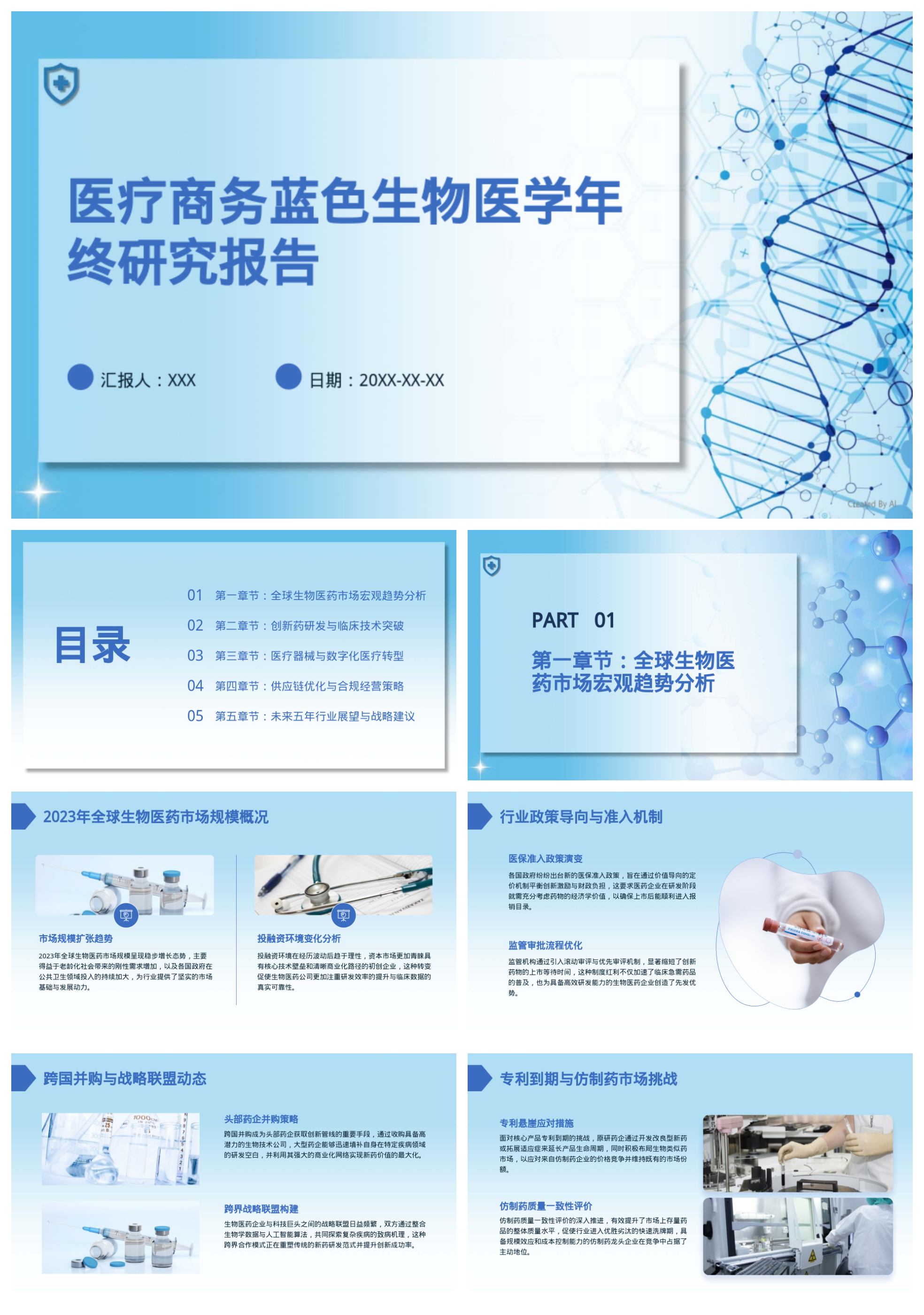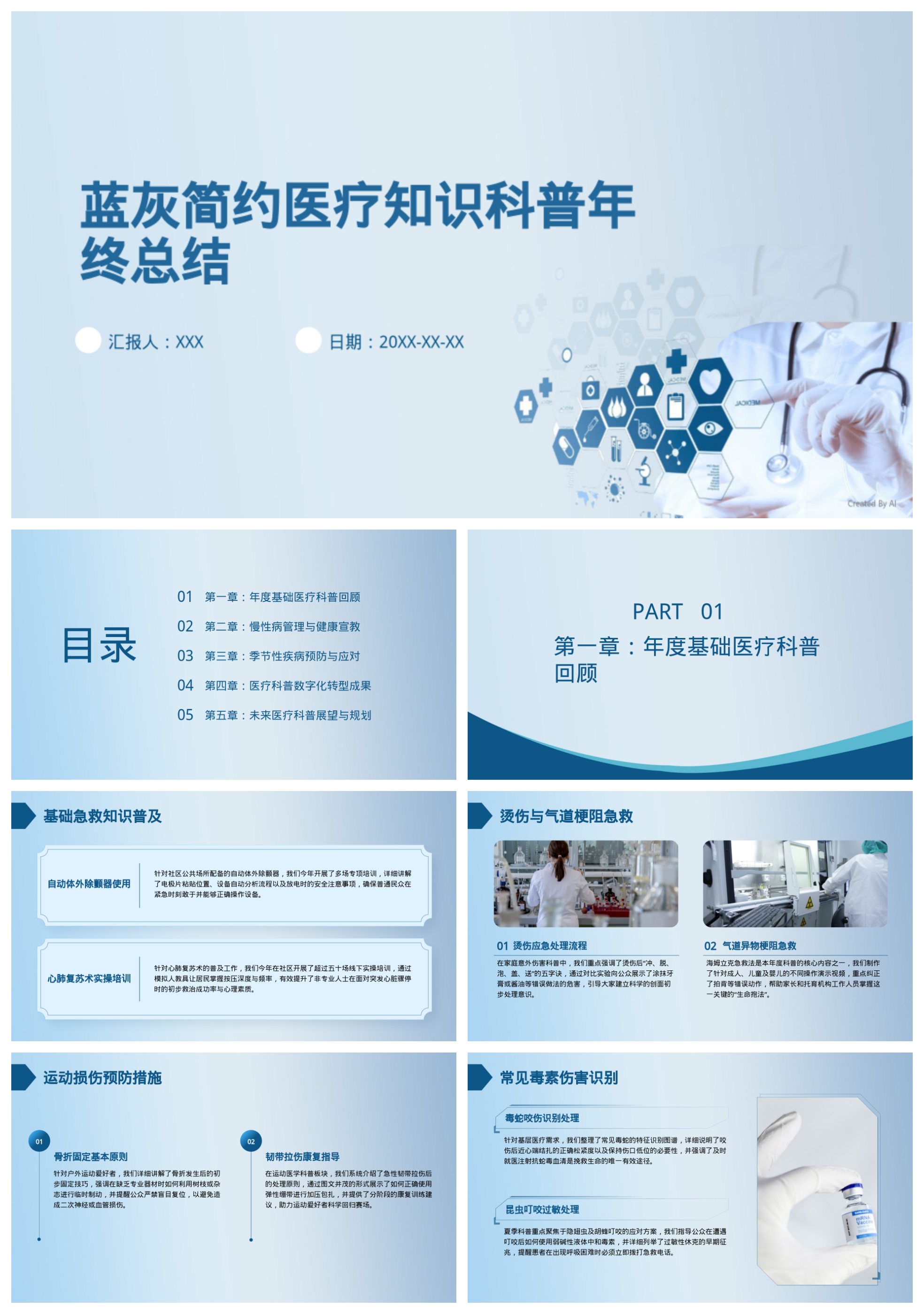 蓝灰简约医疗知识科普年终总结