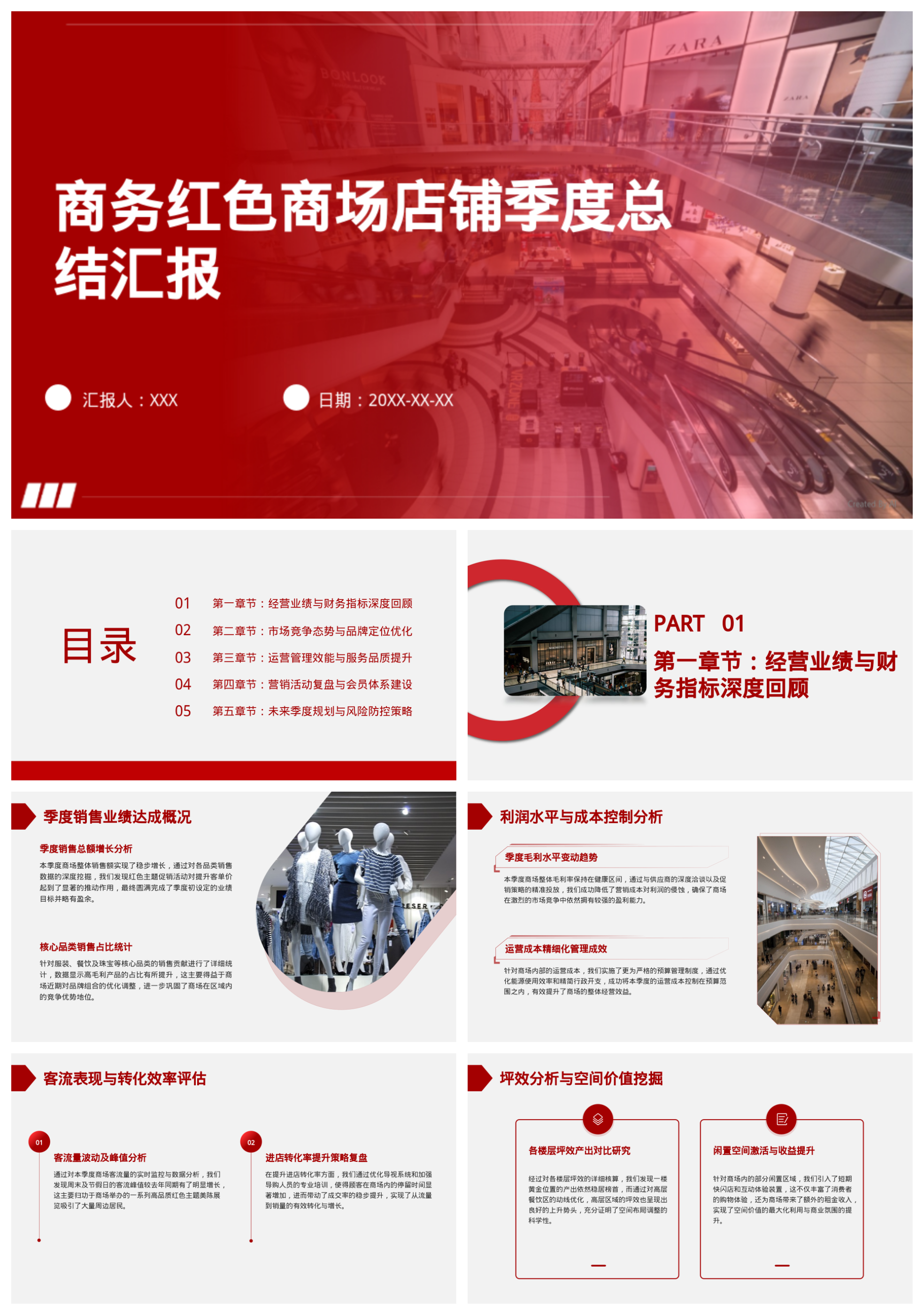 商务红色商场店铺季度总结汇报模板