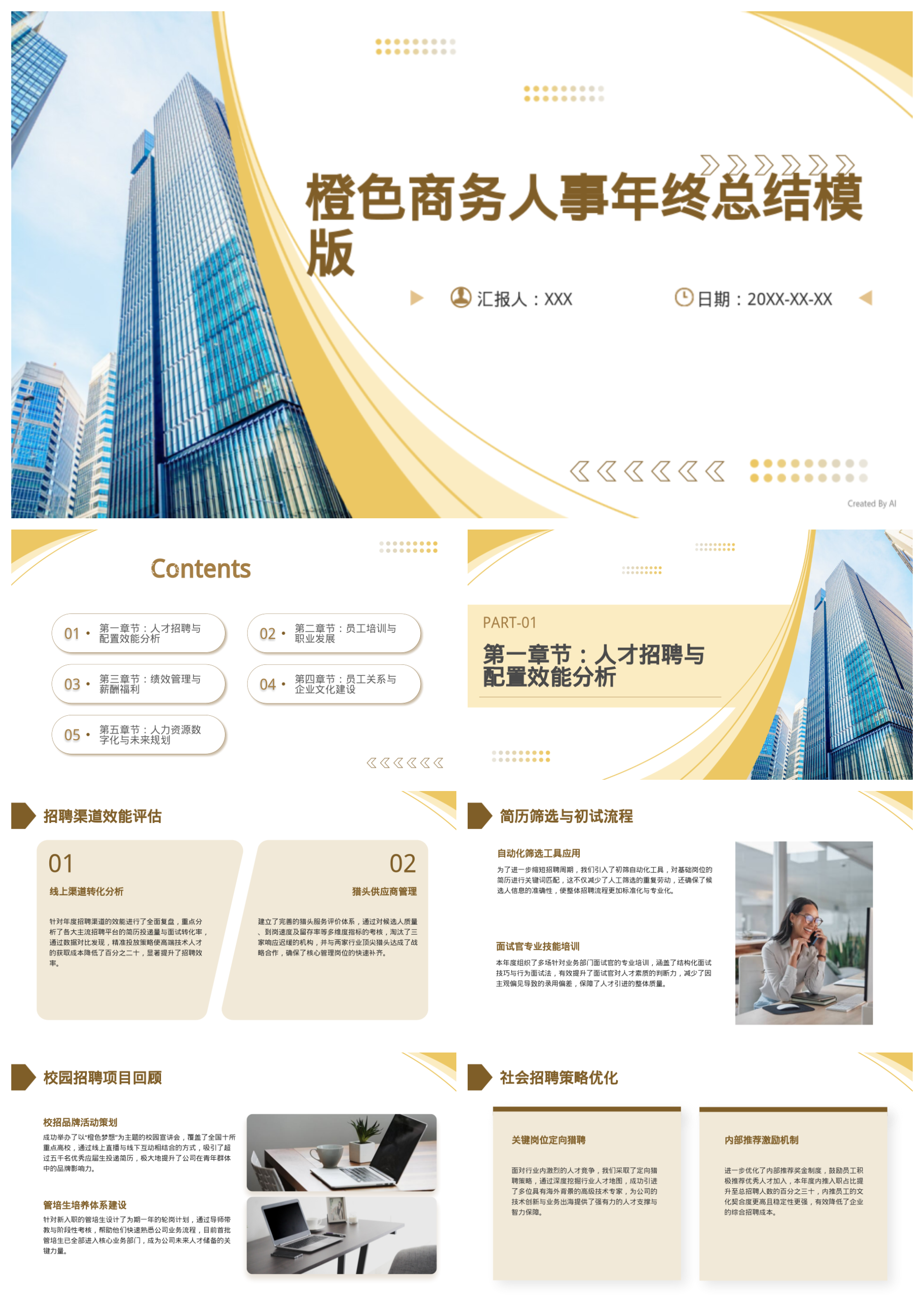 橙色商务人事年终总结模版