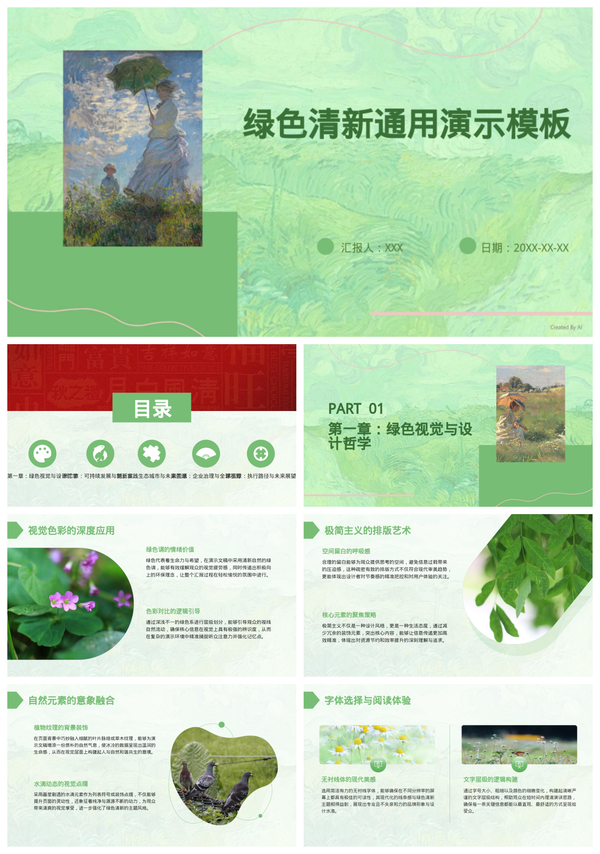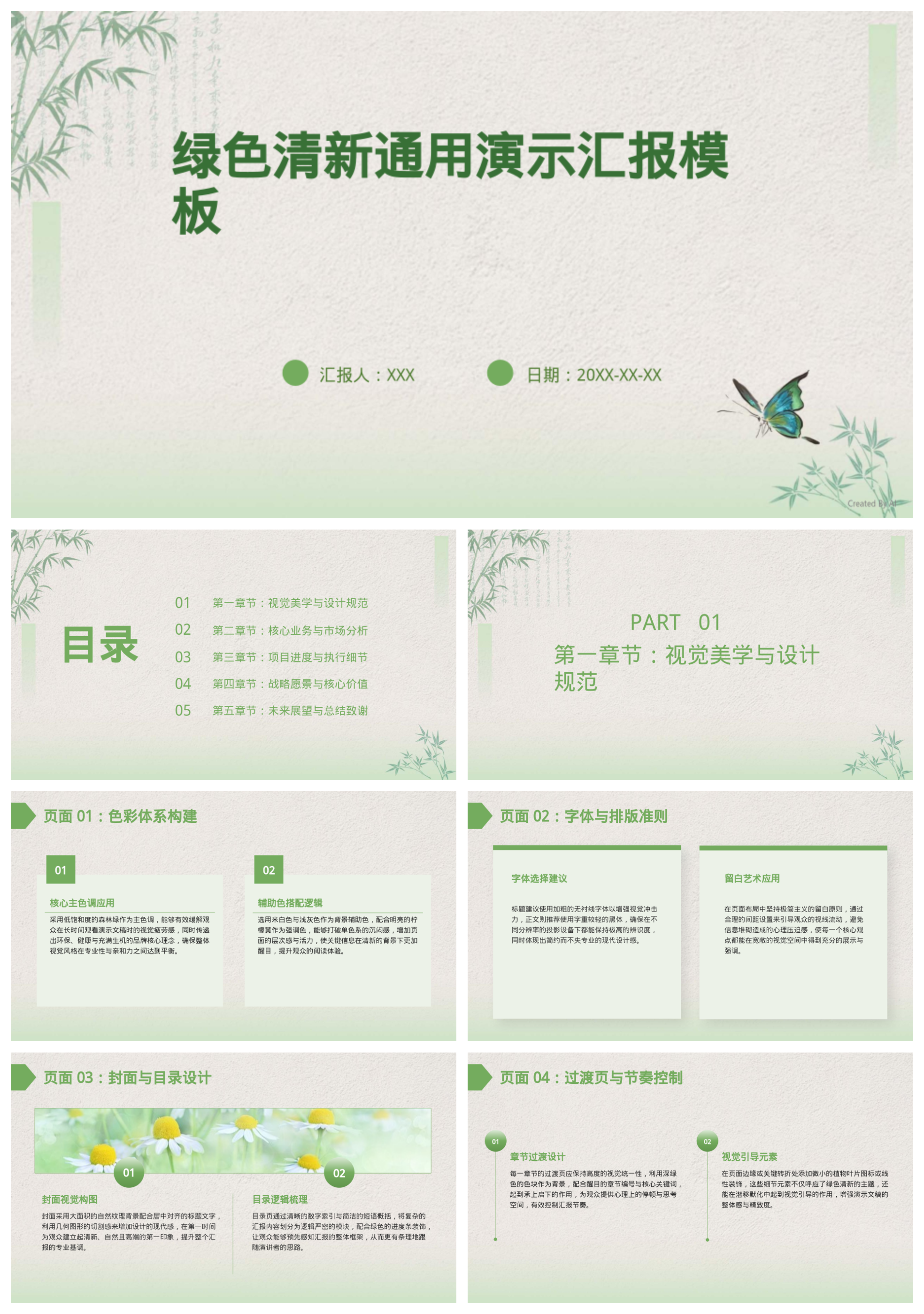 绿色清新通用演示汇报模板