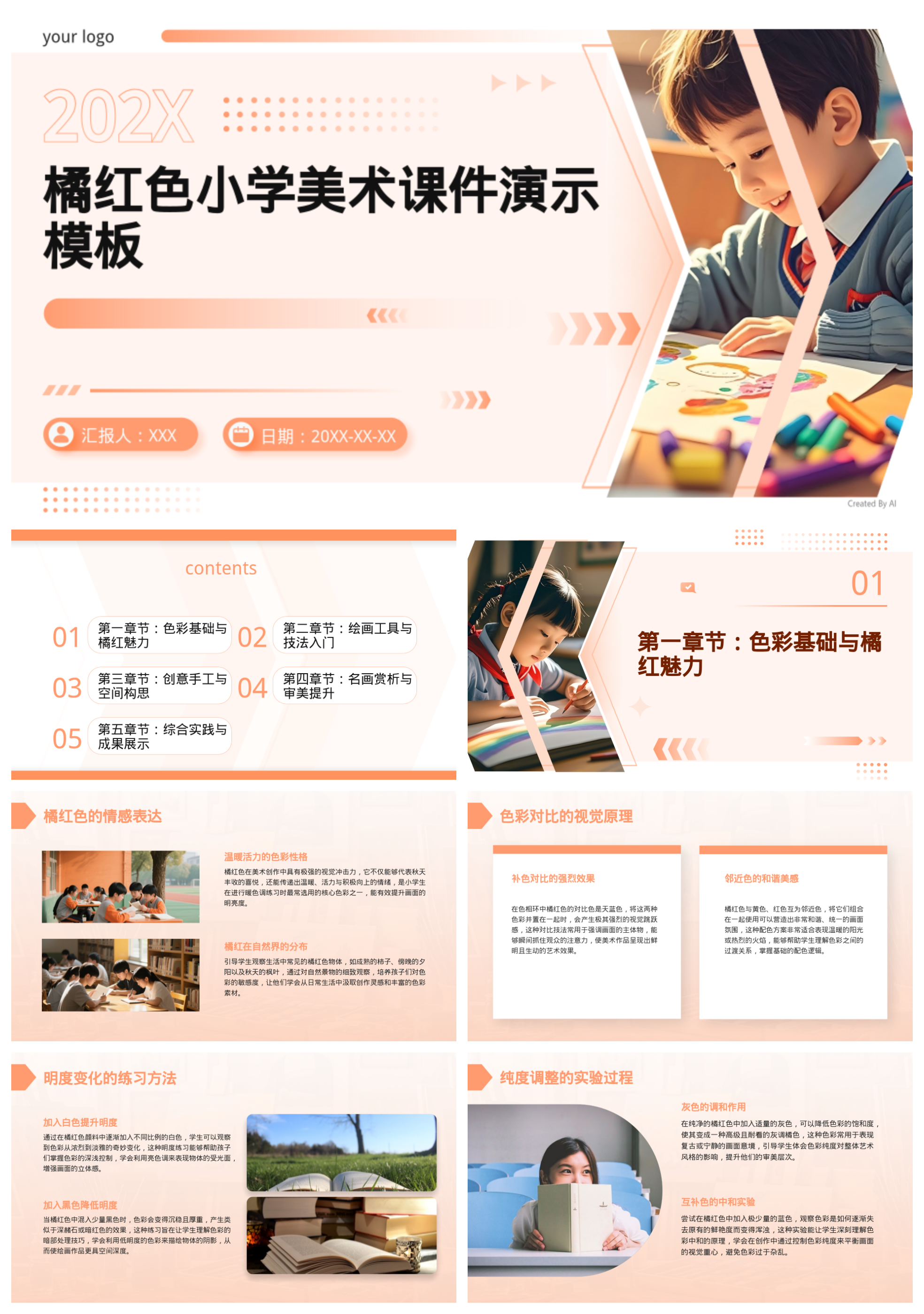橘红色小学美术课件演示模板