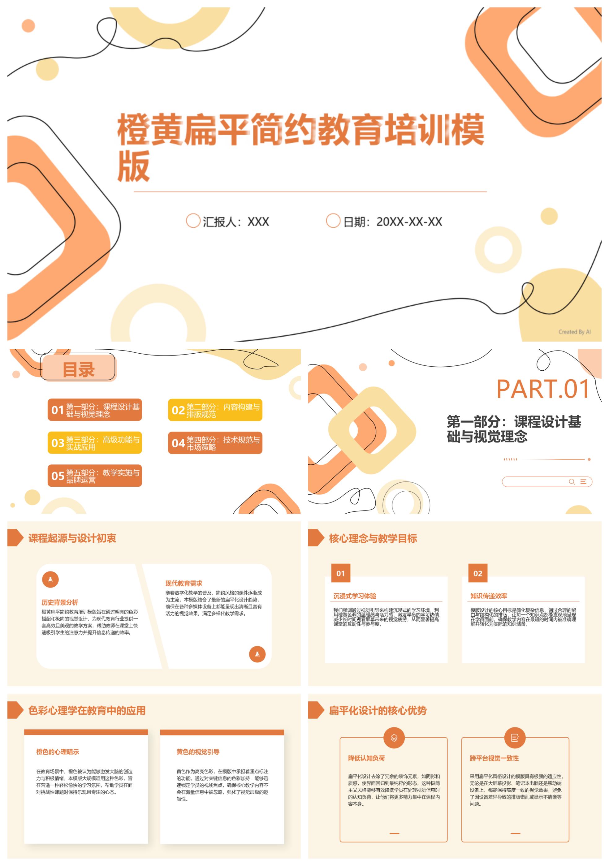 橙黄扁平简约教育培训模版