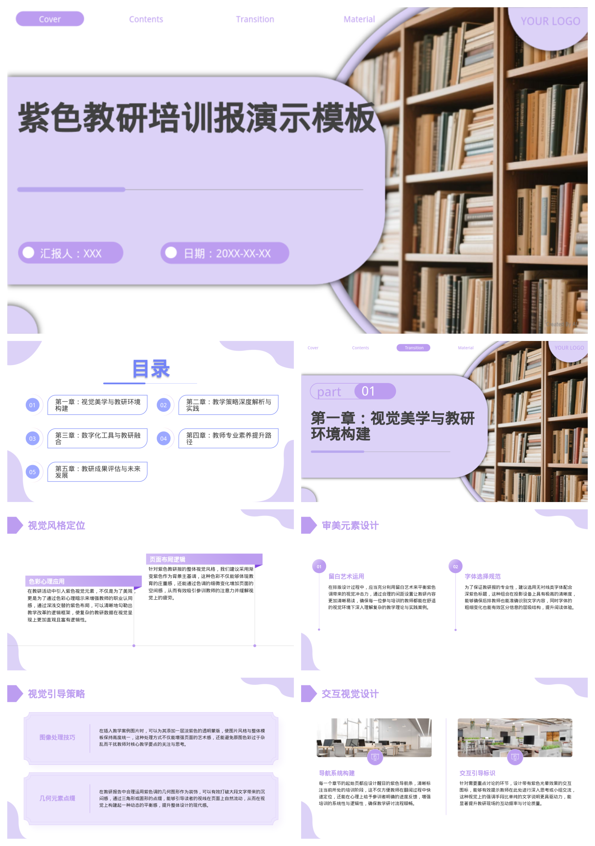 紫色教研培训报演示模板