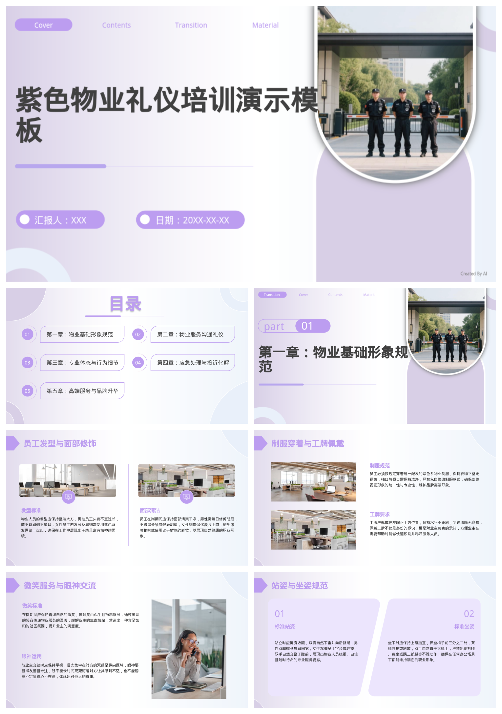 紫色物业礼仪培训演示模板