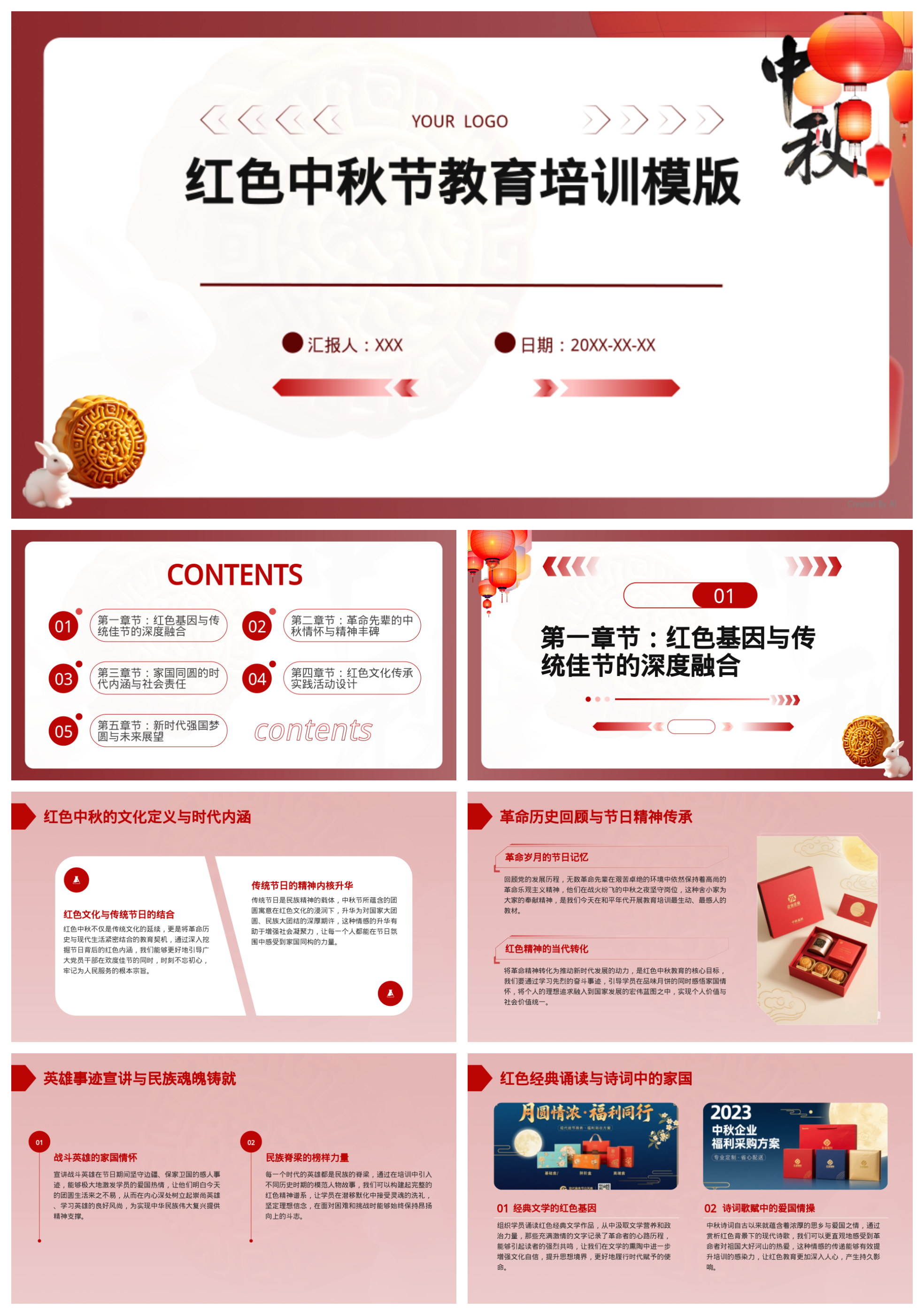 红色中秋节教育培训模版