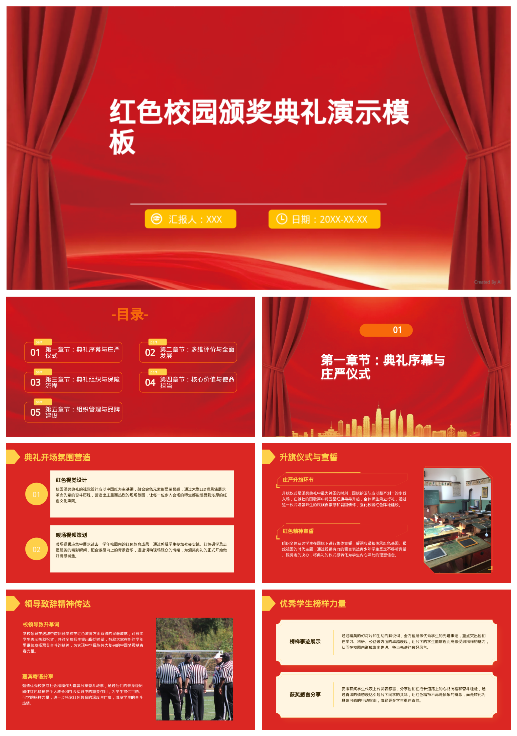 红色校园颁奖典礼演示模板