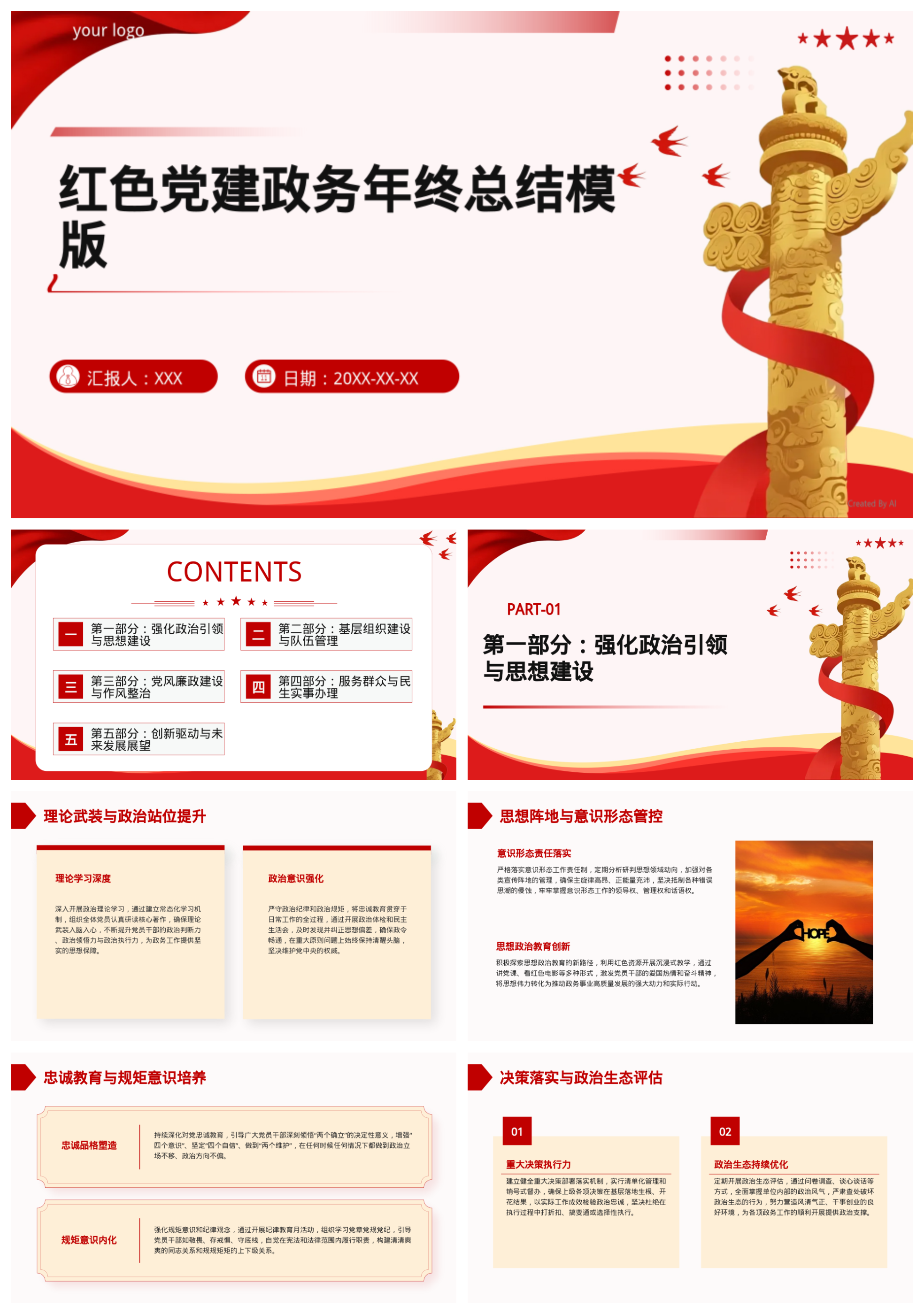 红色党建政务年终总结模版