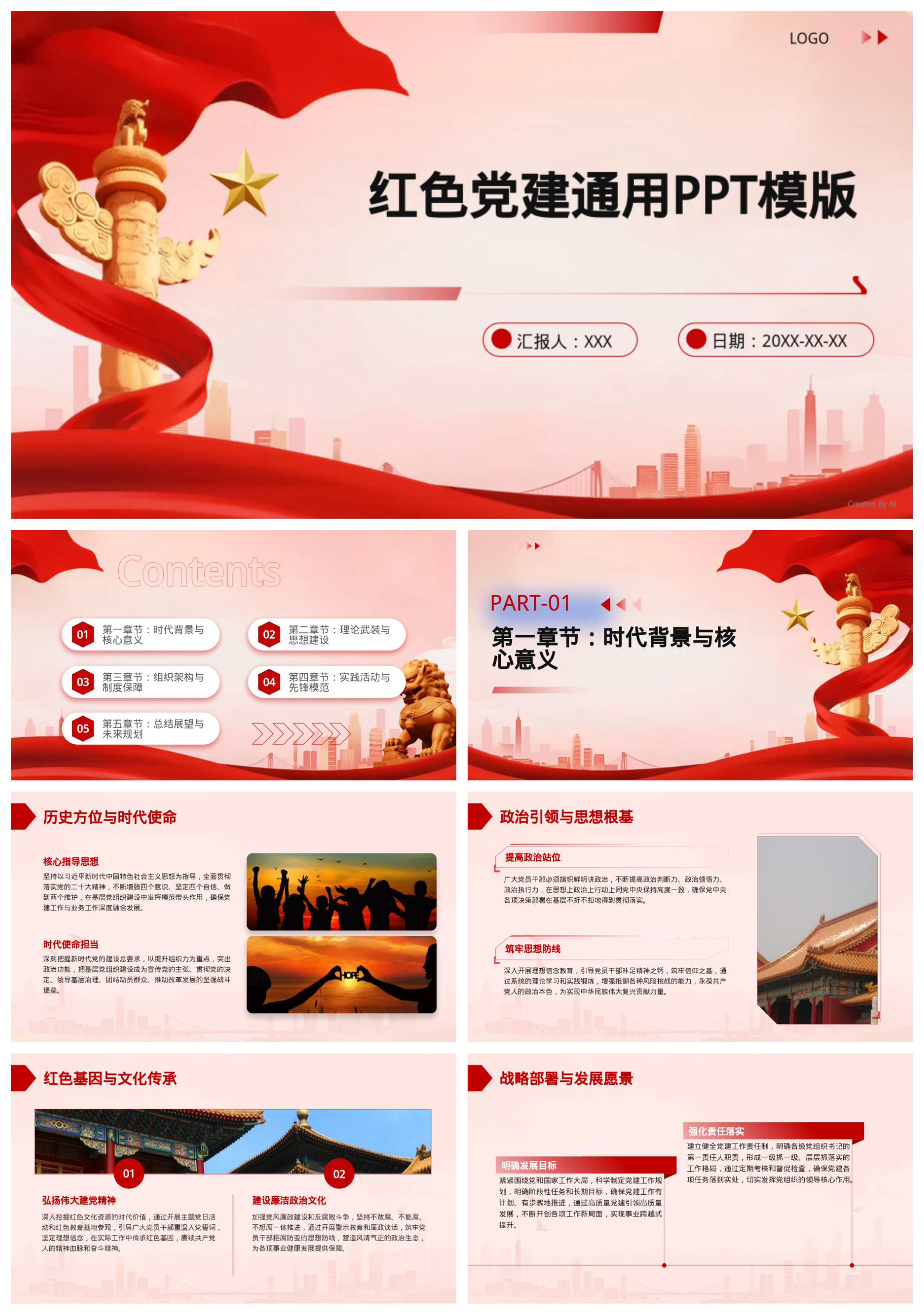 红色党建通用PPT模版