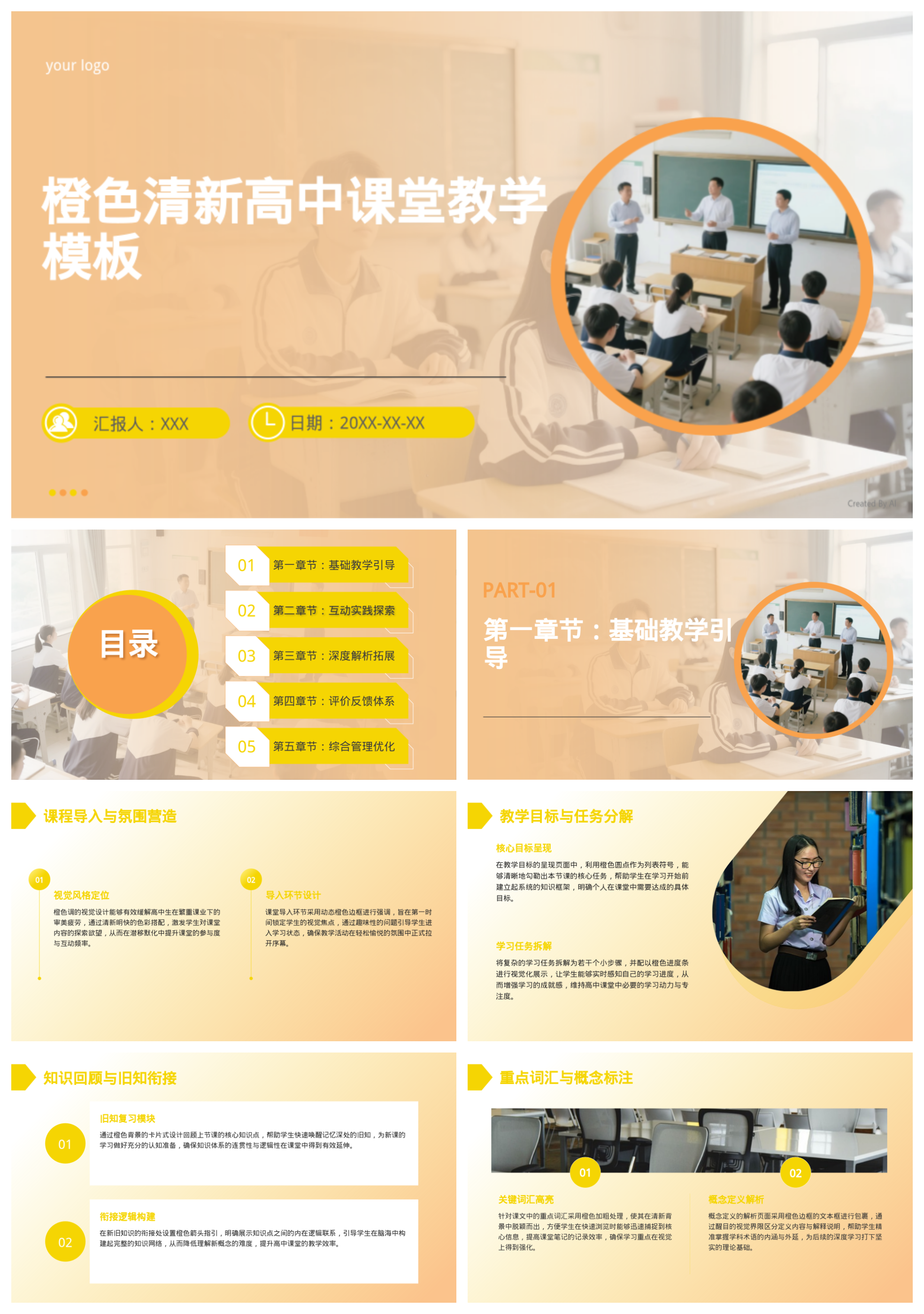 橙色清新高中课堂教学模板