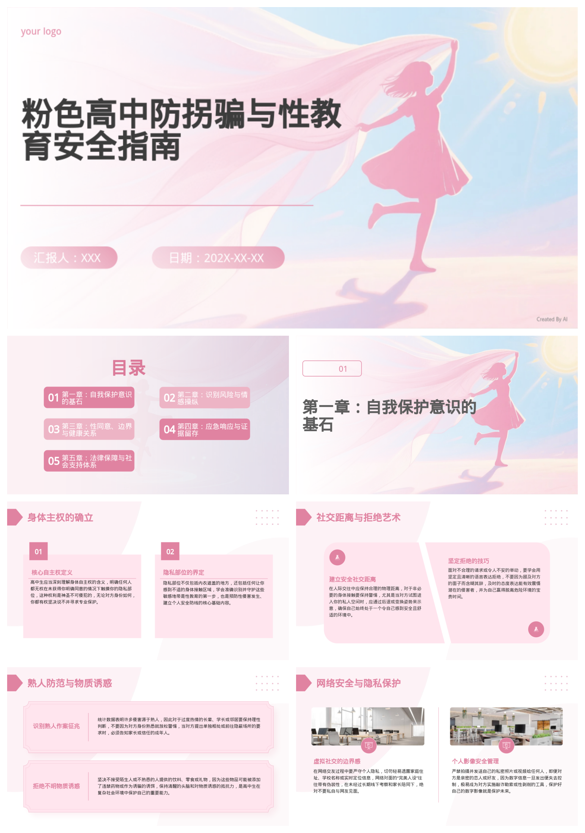 粉色高中防拐骗性教育模板