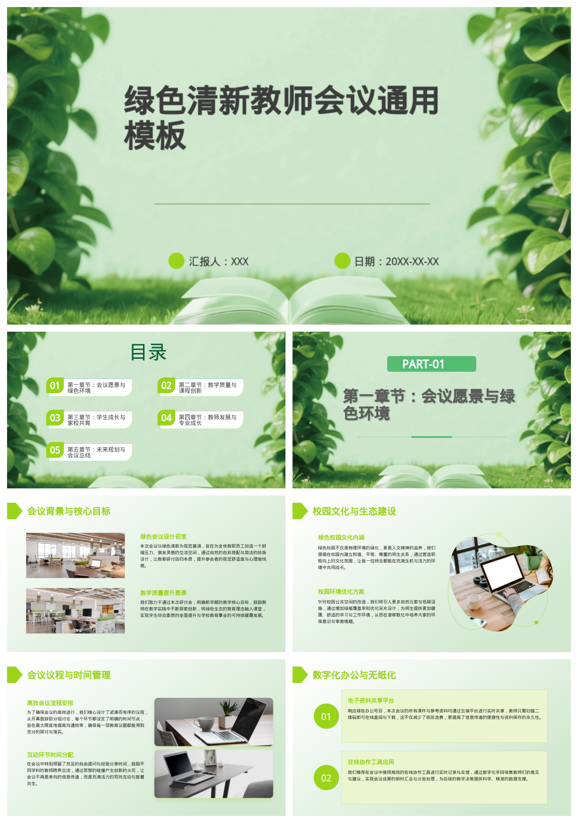 绿色清新教师会议通用模板