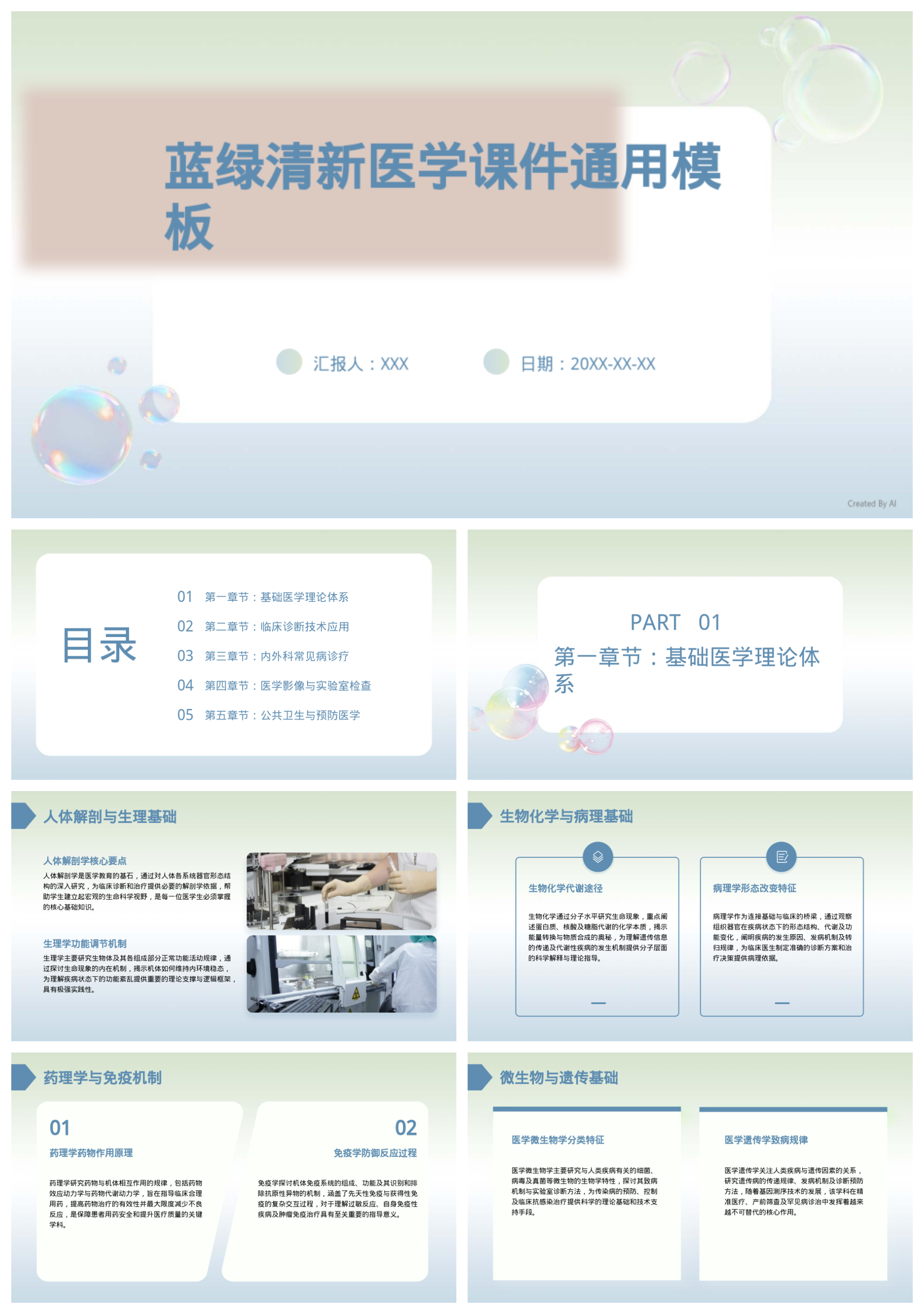 蓝绿清新医学课件通用模板