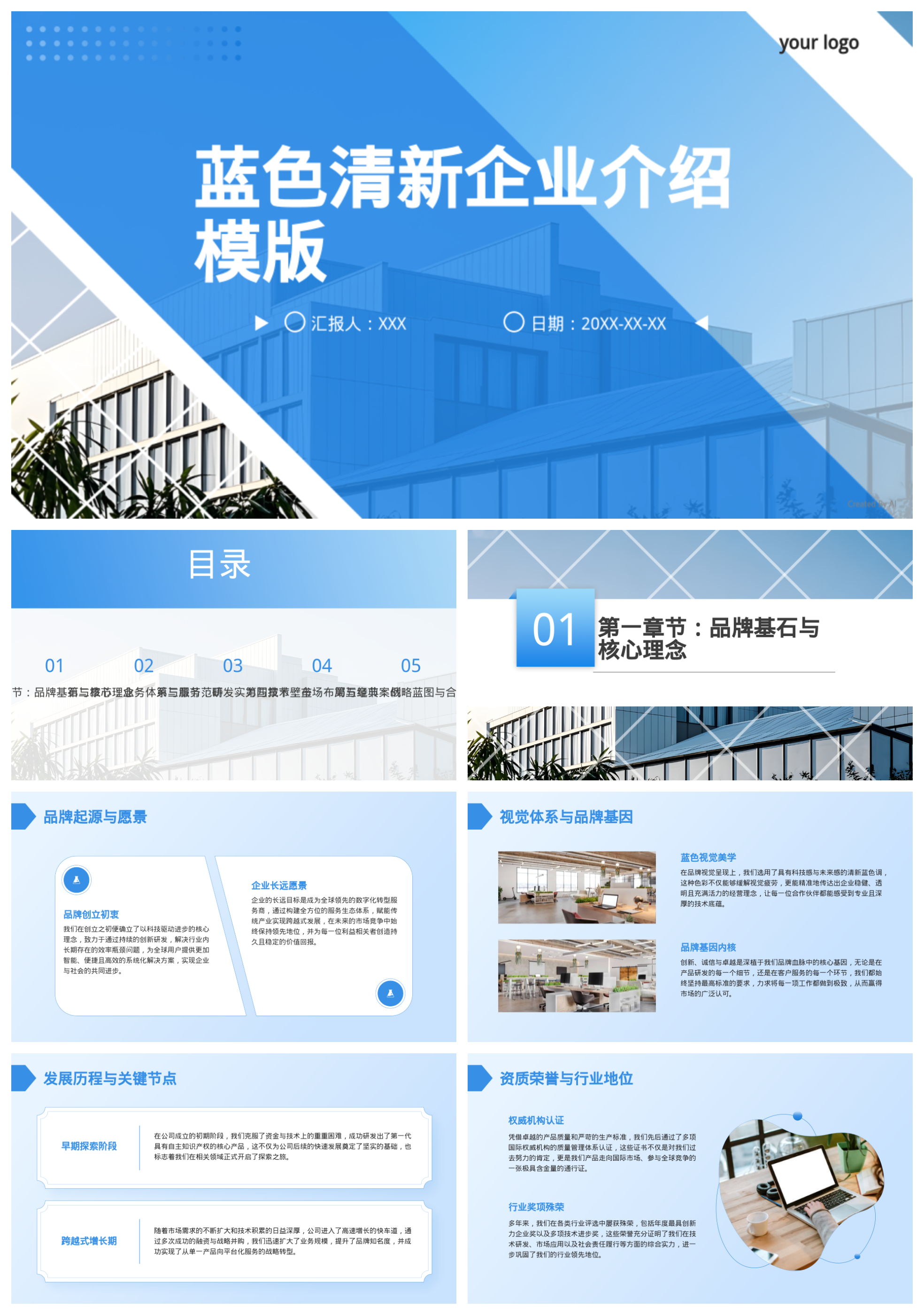 蓝色清新企业介绍模版
