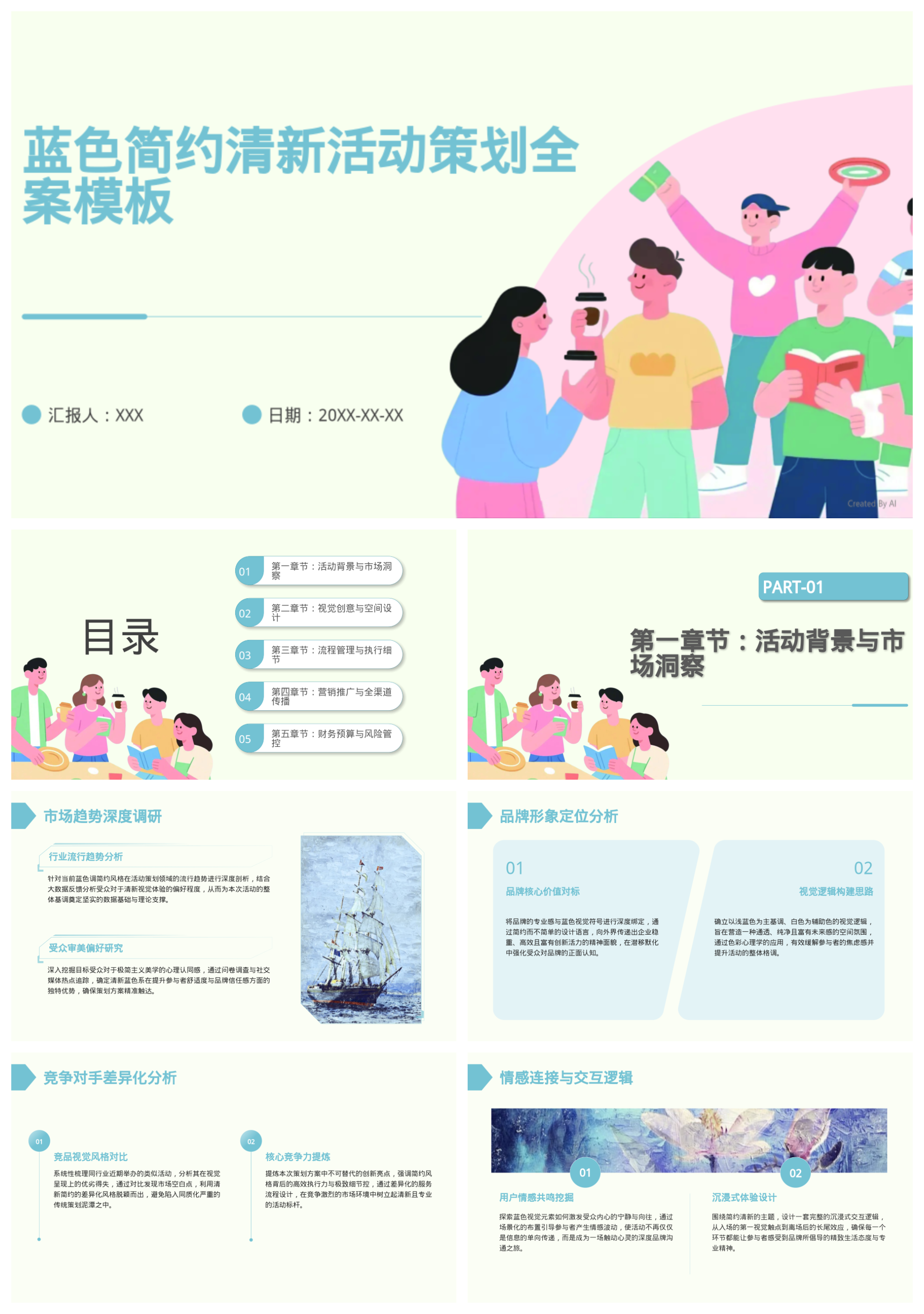 蓝色简约清新活动策划模板