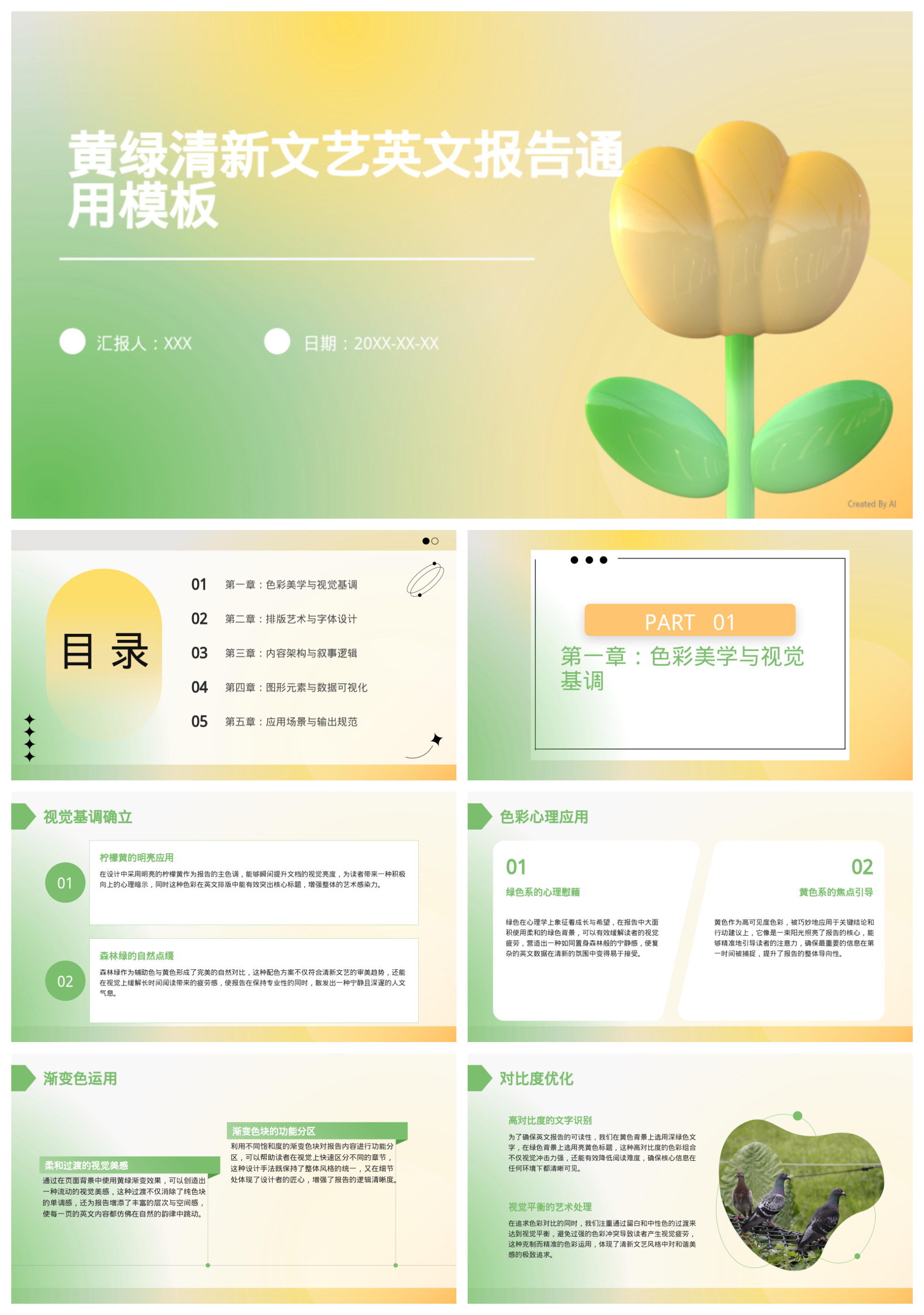 黄绿清新文艺英文报告通用模板