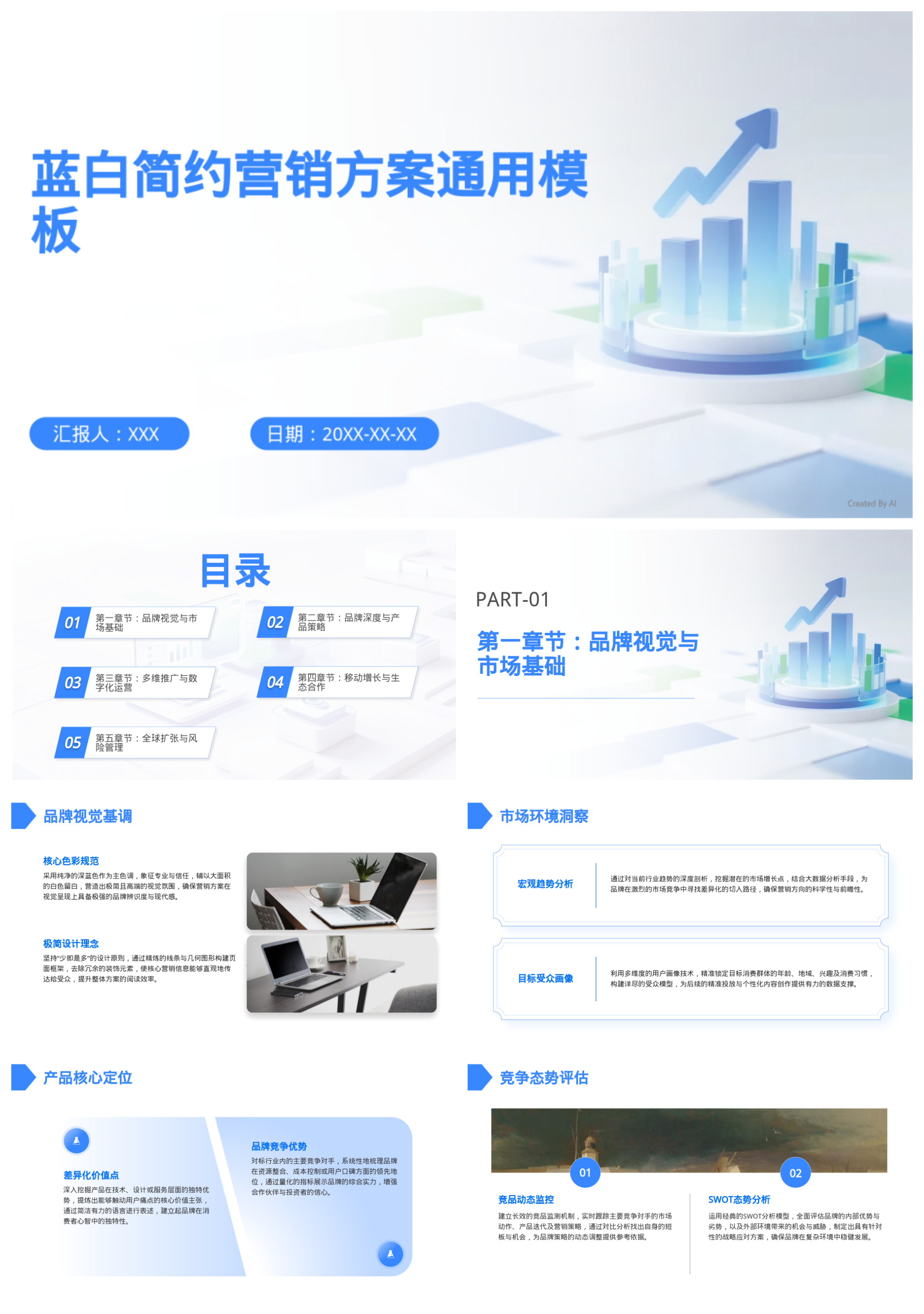 蓝白简约营销方案通用模板