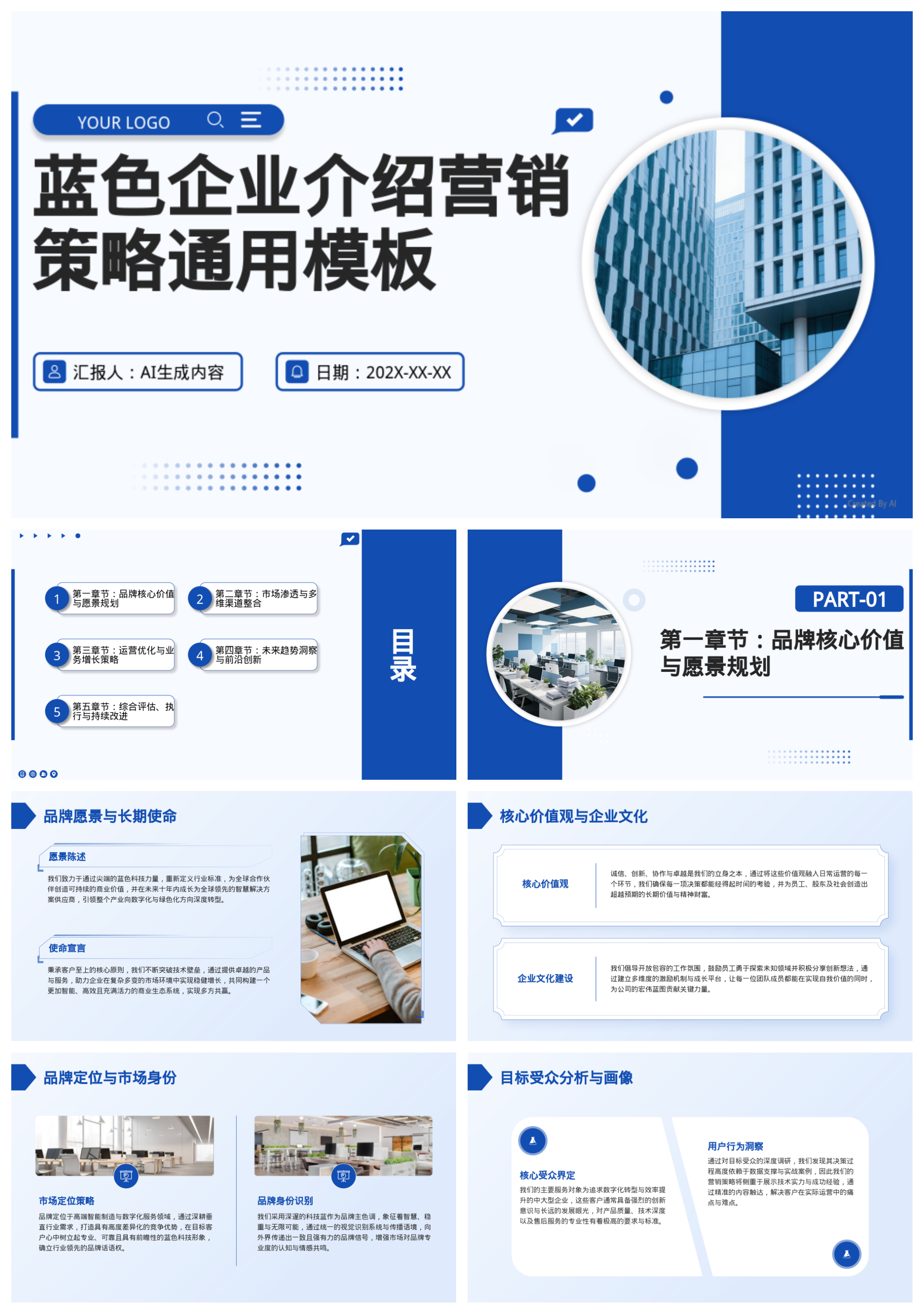 蓝色企业介绍营销策略通用模板