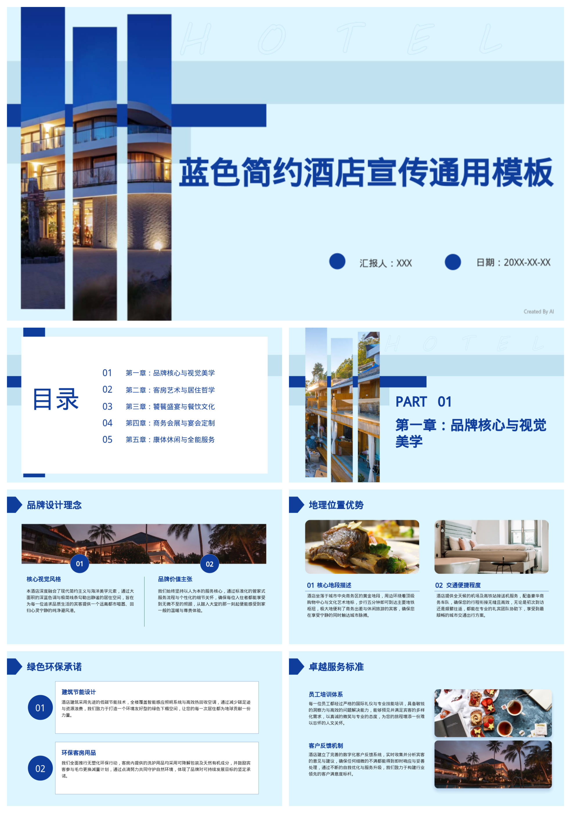 蓝色简约酒店宣传通用模板