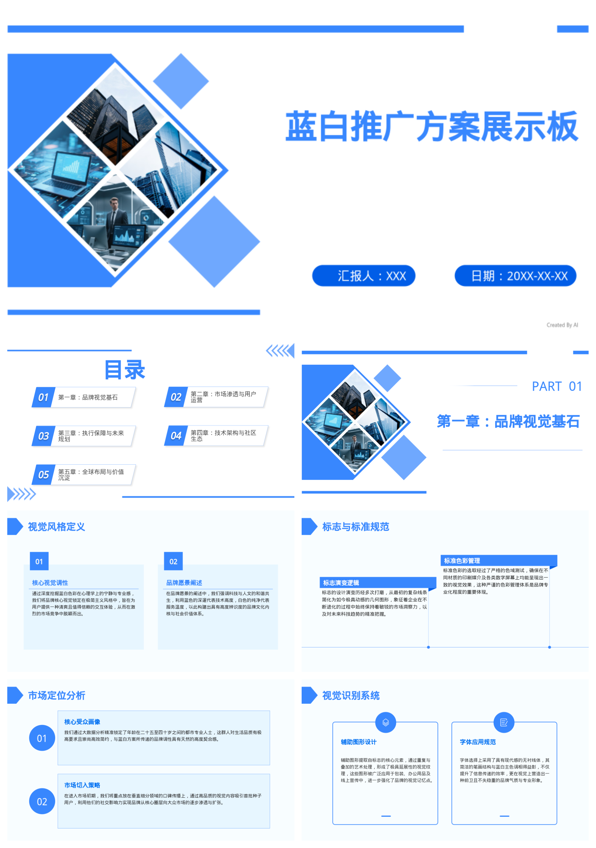 蓝白推广方案展示板