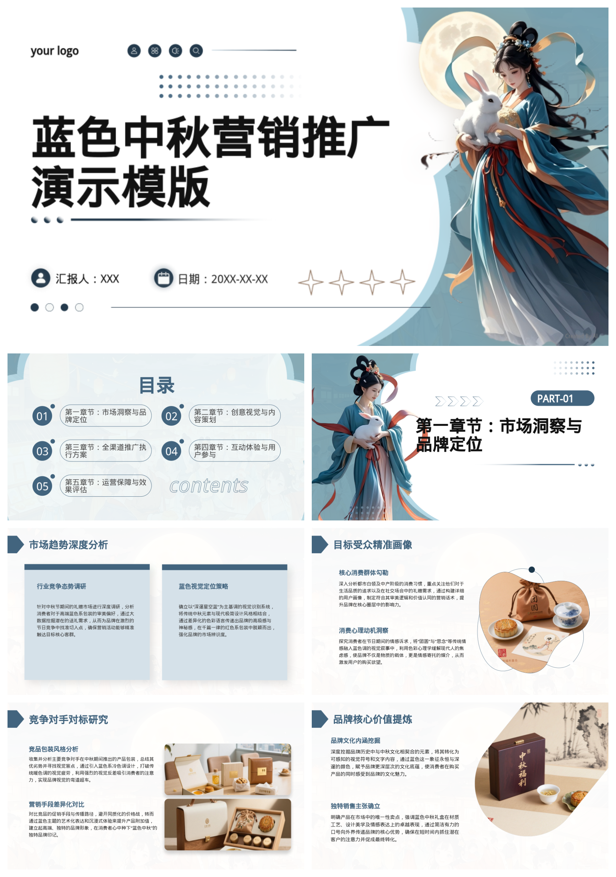 蓝色中秋营销推广演示模版